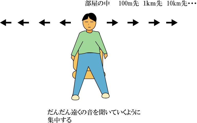 と想像でいいので、近くのものからだんだんと遠くのものを聞き取るように集中してください。