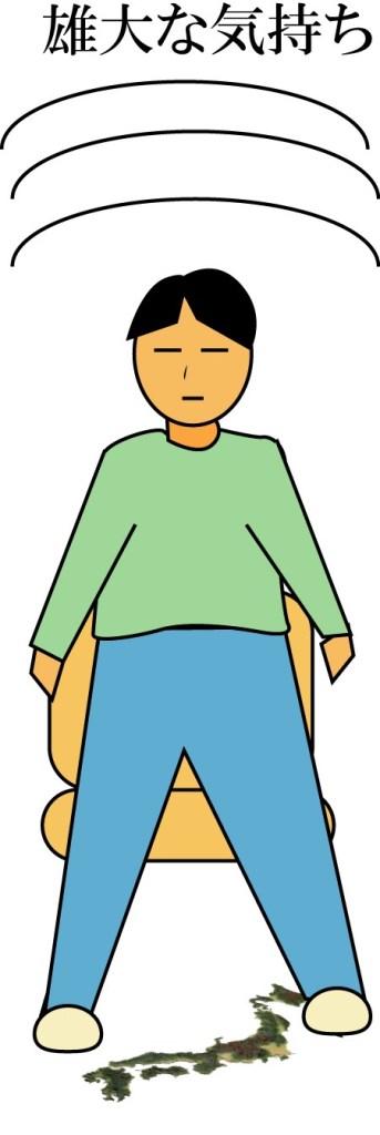 両足で日本列島を踏みつけているようなことを想像し、自分は偉大な存在であることを想像し自信を高めていってください。